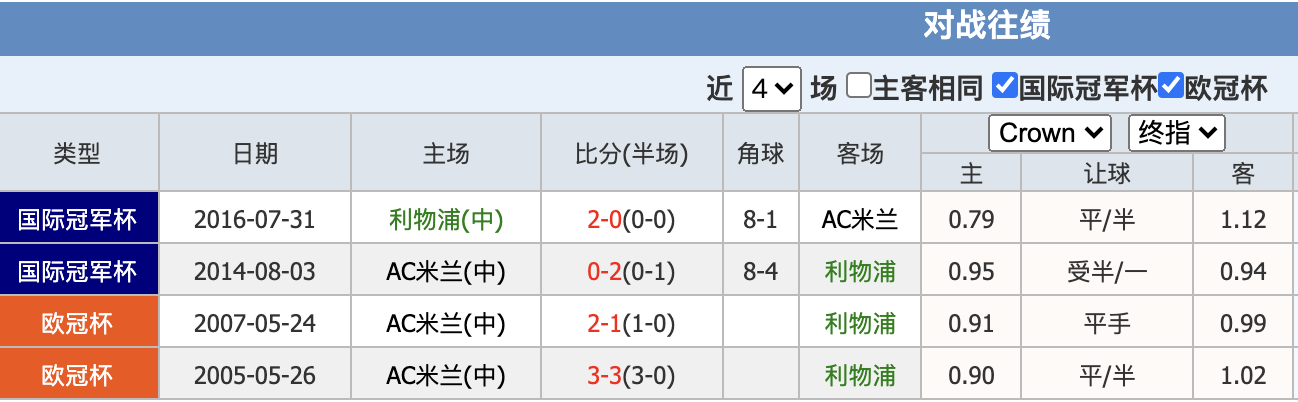 3、国际米兰 荣誉次数年度本 土 联 赛 意甲联赛冠军 18 190910年,191920年,192930年,193738年,193940年,195253年,195354年,19611962,196465年,196566年,197071年,197980年,198889年,200506年意足协改判,200607年, 200708年,200809年,200910;AC米兰巴塞罗那历史赛事全记录 2006415 200854 这两支球队在欧洲冠军杯和欧洲超级杯中都仅有过一次交手195960 十六强11月6日,AC米兰巴塞罗那 0211月25日 巴塞罗那AC米兰 51199394 决赛5月18日,AC米兰巴塞罗那 40200001 小组赛首轮9月26日,巴塞罗那AC米兰;截至2023年12月1日,多特蒙德和ac米兰历史战绩为在最近参加的15场比赛中,AC米兰取得了7胜4负4平的成绩,多特蒙德在最近参加的15场比赛中取得了9胜3负3平的成绩AC米兰总共打进了17个进球,失球17个,场均进球11个,场均失球11个其中大球概率为100%,赢盘率47%,胜率47%场均角球4;历史上交锋过26次~~曼联16胜8平2负,占绝对优势~~故众多评论家均认为不论以什么数据来分析,曼联毫无疑问会冲入决赛之中~~赛季 比赛性质 交战双方 主场比分 客场比分 总比分0405赛季 冠军联赛18决赛 曼联AC米兰 01 01 026869赛季 冠军杯半决赛 AC米兰曼联 20 01 215758。